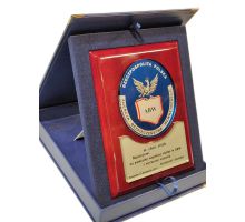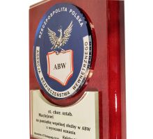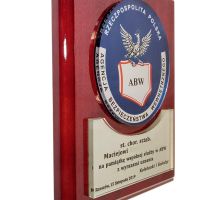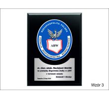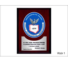 - z laminatu z wygrawerowaną dedykacją i podciętym miejscem na odznakę,