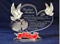 Podziękowanie dla Rodziców - statuetka z pleksi i laminatów w kształcie serca z gołąbkami