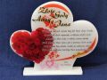 Rocznica Ślubu - statuetka serca z mlecznej pleksi z nadrukiem