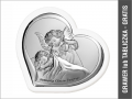 Aniołek z latarenką w sercu na białym drewnie z podpisem Pamiątka Chrztu Świętego - srebrny obrazek 6449W