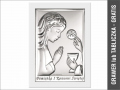 Pamiątka I Komunii Św. z dziewczynką przyjmującą Komunię - srebrny obrazek na białym drewnie 6491W