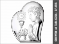Pamiątka I Komunii Św. z chłopczykiem w sercu - srebrny obrazek 81123