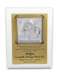 Pamiątka Komunii dla dziewczynki - srebrny obrazek na złotym laminacie i białym podkładzie