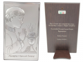 Pamiątka I Komunii Św. - srebrny obrazek z chłopczykiem, kielichem i Hostią JAP758 z grawerem