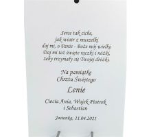 - z blachy lub laminatu z nadrukiem ozdobnego tła, dedykacji i zdjęcia dziecka
