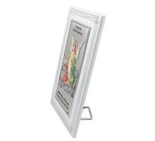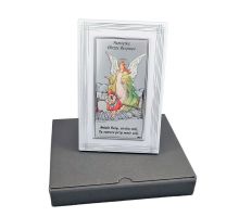 Wyjątkowa pamiątka z okazji Chrztu Świętego w postaci złożonego dyplomu okolicznościowego na białym drewnianym podkładzie.