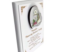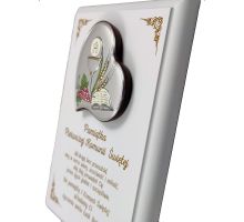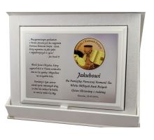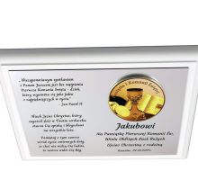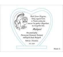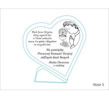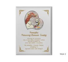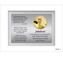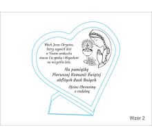 Pierwsza komunia zasługuje na wyjątkową oprawę, dlatego oferowana pamiątka komunii to prezent wyjątkowy. W sklepie PawTom wykonujemy różne upominki z okazji przyjęcia pierwszej Komunii Świętej jak srebrne obrazki z wytłoczonym wizerunkiem Jezusa, chłopca lub dziewczynki przyjmującej komunię świętą. W ofercie dostępne są także statuetki ze szkła lub płyty pleksi oraz dyplomy drewniane. Każda pamiątka komunii może zyskać wyjątkowy charakter przez nadruk lub grawer dedykacji, obrazków i grafik.