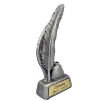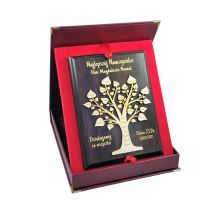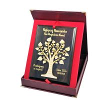 - ze srebrnego laminatu grawerskiego z pamiątkową dedykacją,