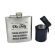 Do piersiówki można dodatkowo zamówić komplet 4 kieliszków ze stali nierdzewnej oraz etui z ekoskóry.