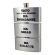Metalowa piersiówka stainless steel ma łączną pojemność 270 ml i strukturę szczotkowanej stali.