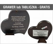 Grawer dedykacji wykonany jest bezpośrednio w drewnie lub na stolej tabliczce.