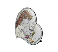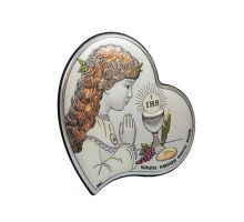 Srebrny obrazek prostokątny "Pamiątka I Komunii Świętej z chłopczykiem DS04/C" kolorowy.