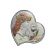 Obrazek ma kształt serca i przedstawia modlącą się dziewczynkę oraz kielich z Hostią.