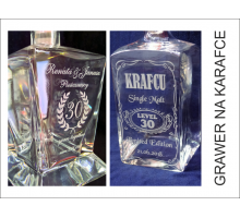 W sklepie PawTom oferujemy różnego rodzaju karafki szklane i kryształowe. Wykonujemy na powierzchni karafki indywidualny grawer dedykacji, życzeń, logo, zdjęć grafik i ozdobnych innych treści nadających im wyjątkowy charakter. Dostępne są różne kształty, wielkości i kolory karafek z grawerem, które idealnie nadają się na prezent na urodziny, ślub, jubileusz, rocznicę, jak również z okazji uroczystości firmowych. Grawer na karafce podniesie walory estetyczne przedmiotu.
