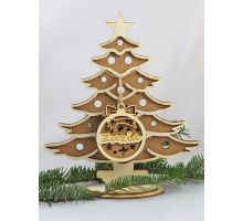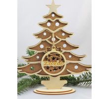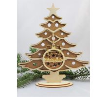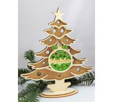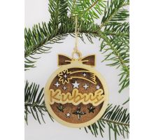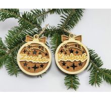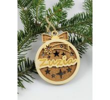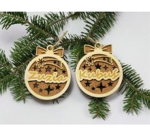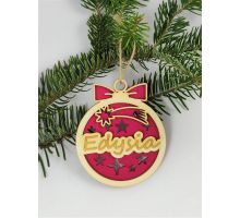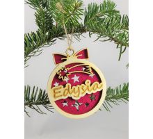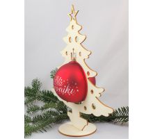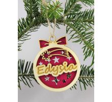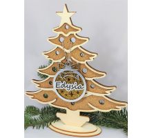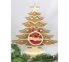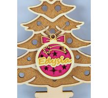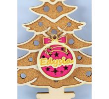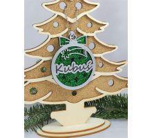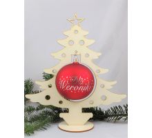 W środku stojaczka zawieszona jest brokatowa ozdobna zawieszka w formie bombki z indywidualnym zdjęciem.