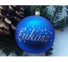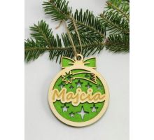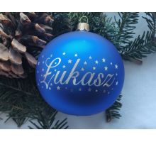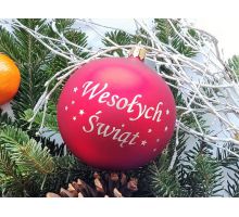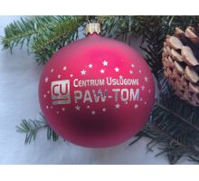 Bombka wykonana jest z mieniącego się brokatowego materiału, przypominającego pleksę.